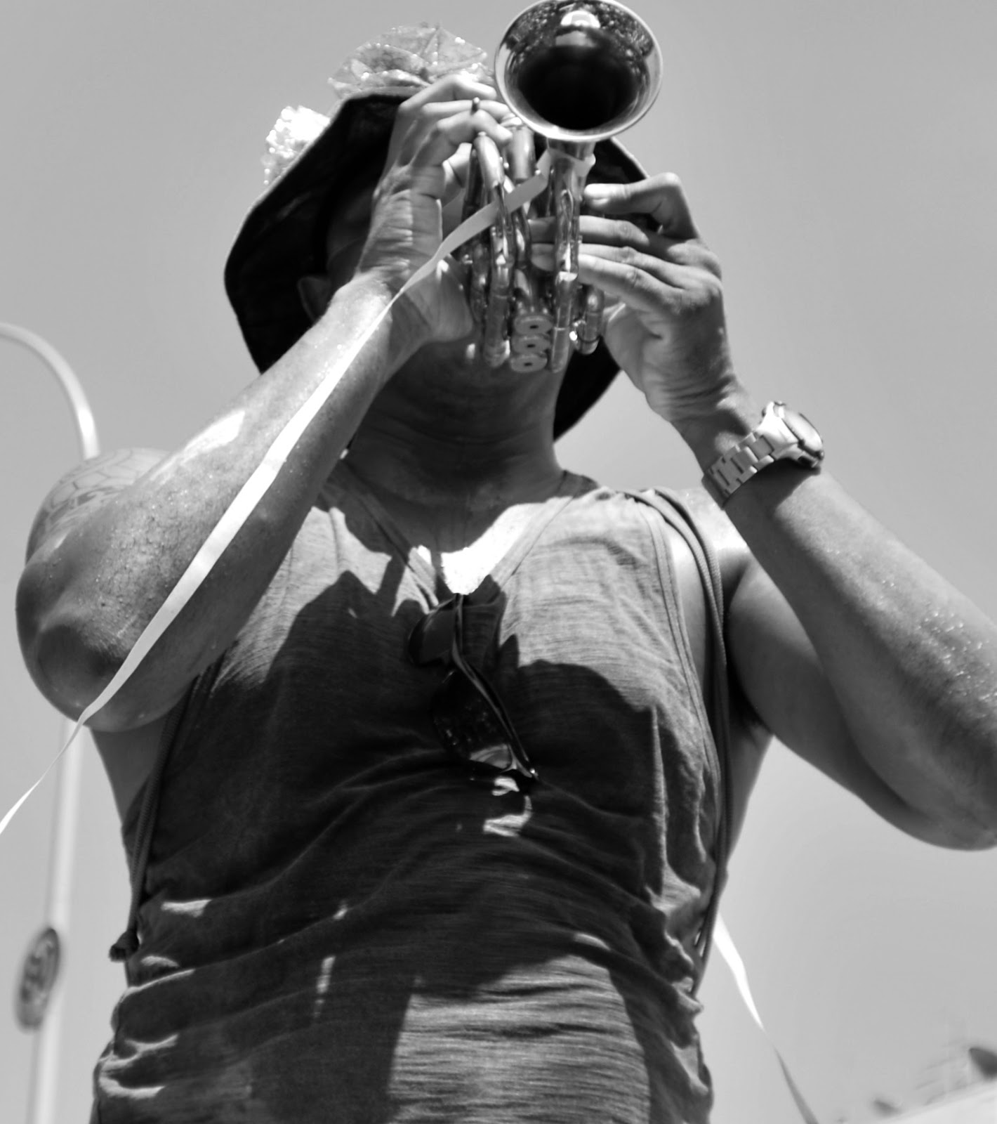 Consegui um cantinho na frente dos músicos, ajeitei a luz e comecei os disparos. Ainda na concentração, surge na roda dos músicos um menino aparentando ter 10 anos empunhando seu trompete. No primeiro sopro, o pequeno músico toca James Brown empolgando todos à sua volta.